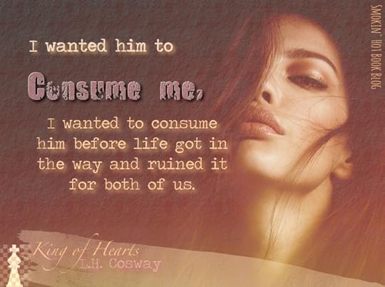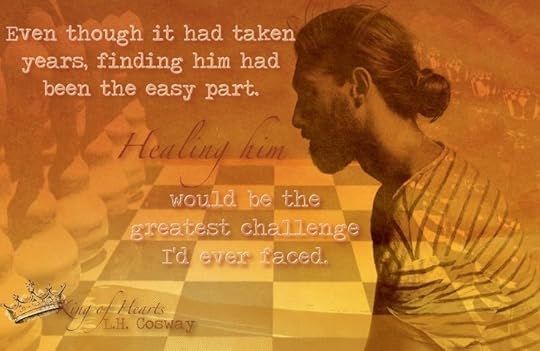 My heart felt like it was reading two stories weaved into one. It was seamlessly, and beautifully  done.  L.H. Cosway stepped up her game with this book. I would not have thought that possible, since I devoured and adored Six of Hearts, Hearts of Fire, Painted Faces and Killer Queen, but for me, this is truly an epic read. I can’t stop thinking about it, it has weaved its way into my daily activities. Music on the radio reminds me of these incredible characters. Driving down the road I find my thoughts drifting to scenes from the book. A beautiful story of seduction, second chance romance, healing, and unconditional love at its finest, King of Hearts is by far one of my Favorites of the Year and of all-time!