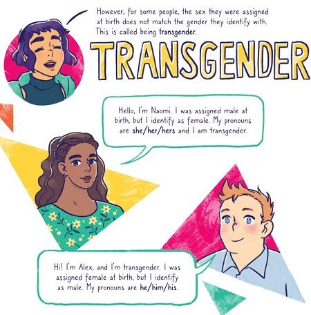 The basics it covers are mostly alright, but there's just an abundance of sloppy choices that I can't explain. A particularly egregious definition is: "NON-BINARY. This refers to any gender identity that is not male or female." This is a common lacking definition, which has a dissonance when the book already understands nonbinary people can use he/she pronouns, as nonbinary can be someone who is demigender, genderfluid, nonbinary man/woman, etc. so that definition ignores those identities. It also relates to the book's eagerness to keep using the male/female binary, also using the terms interchangeably at times with man/woman. Oddly, the book in its bullet point wall of tips talks about not saying "preferred pronouns" (pointing out how it implies they are a suggestion, not mandatory) strongly relies on lots of "identify" language. For a recent book, especially knowing that they are aware of the importance of linguistic implications, they should have used the "is" model to indicate that it being trans is a state of being, not a choice (He identifies as trans VS. He is trans).