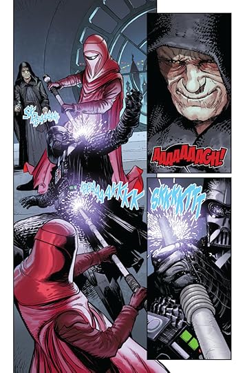 Into the Fire is a superb volume of Star Wars content, nearly five stars for shock value alone (). I have to say though: not a huge fan of Raffaele Ienco's art. It's consistent, but close up on the characters and they get all wrinkly and stretched. And why is Sith assassin Ochi portrayed as a buffoon? I prefer my assassins with a tad more mettle - and I suspect the Emperor would as well.