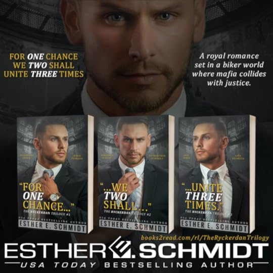 Where do I start? For One Chance is book 1 in a new series called The Ryckerdan Trilogy written by the talented author Esther E. Schmidt. In this installment we get to meet the protagonist of the story; Windsor Dellaroys, a good-looking man, self made billionaire that cares for the ones he love like his Mother and 2 best friends & Linnette Lawson a biker princess, Deeds and Lip’s youngest daughter who also works undercover for Broken Deeds MC , New Jersey chapter. What else could you ask for? Windsor and Linny meet by chance and fate throws them together again. The chemistry between this two is hot and undeniable. In this story line full of action, mystery, suspense, danger, family banter, lots of emotions, secrets and love. 2 worlds collide together, a royal romance trilogy set in a biker world where mafia collides with justice. I really wanted to kick Linnette's brother Spence for been such a jerk. A MUST READ!!! I can't wait to start reading the second book.