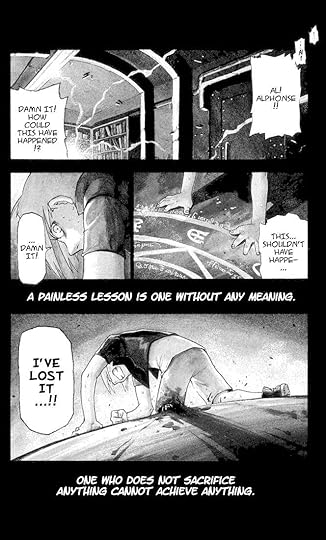 ”Humankind cannot gain something without first giving something in return. To obtain, something of equal value must be lost. This is Alchemy’s First Law of Equivalent Exchange. In those days, we really believed that to be the world’s one, and only, truth.”