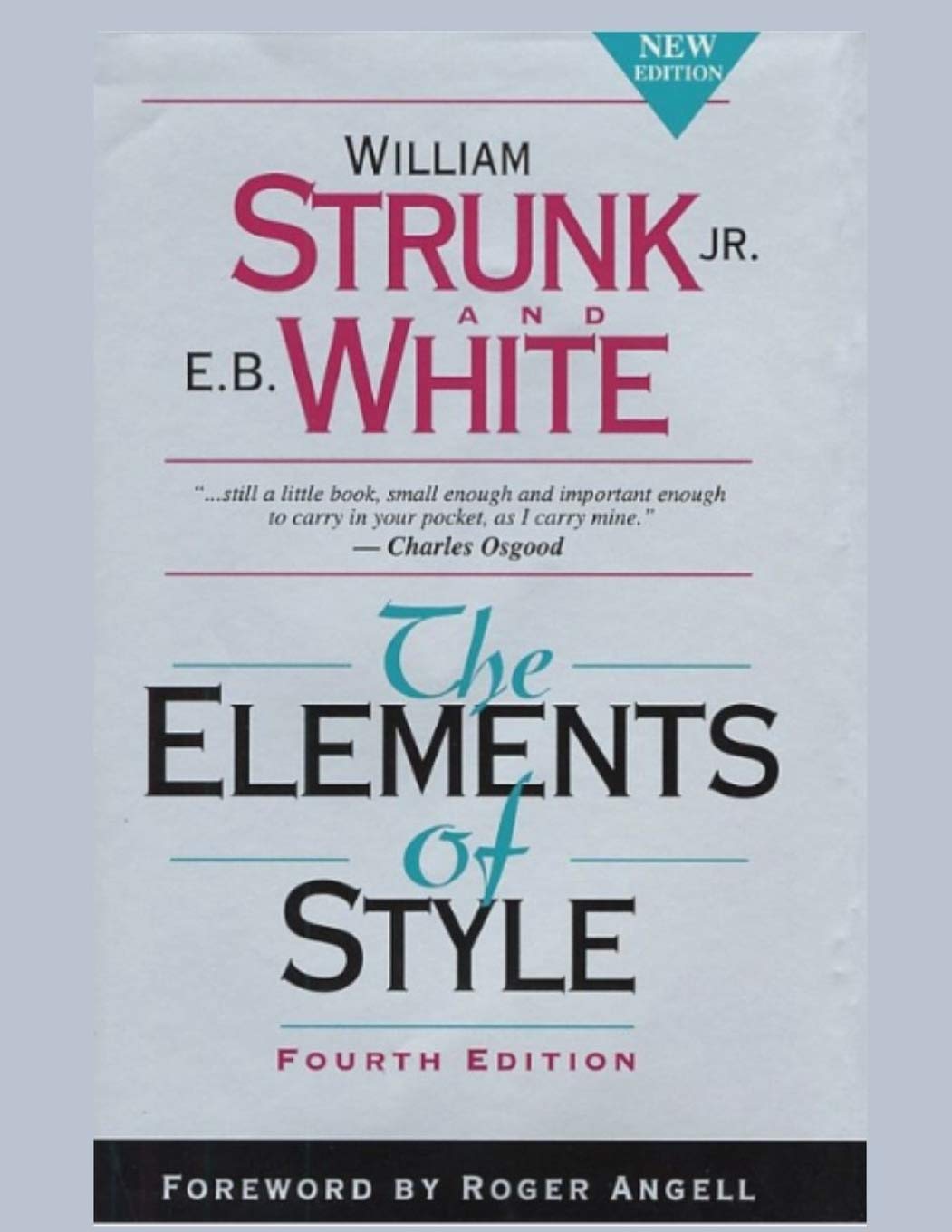 You know the authors' names. You recognize the title. You've probably used this book yourself. This is The Elements of Style, the classic style manual, now in a fourth edition. A new Foreword by Roger Angell reminds readers that the advice of Strunk & White is as valuable today as when it was first offered.This book's unique tone, wit and charm have conveyed the principles of English style to millions of readers. Use the fourth edition of "the little book" to make a big impact with writing.