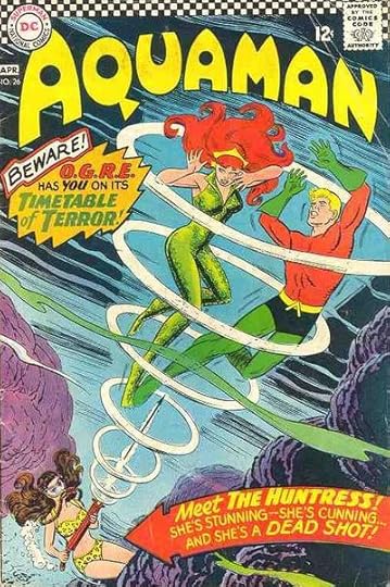then what is positive here? Nick Cardy's art work for one. He draws beautiful seascapes, even in black and white. Also, some of the bad guys/stories are kind of clever, in a cheesy way. Like OGRE, this secret spy ring that is basically random people doing what a random person tells them to do, is a nice (albeit forced) extra dimension. I also like the challenges to Aquaman's sexuality, like Aliena, an alien chick sent to Earth to flirt with/betray our married protagonist. And the more subtle challenge presented by Aqualad (his adopted son) falling in love with the "hippie" (forced) Aquagirl. It's not Tennesse Williams, but I like that they are challenging Aquaman's nuclear family (albeit lightly).