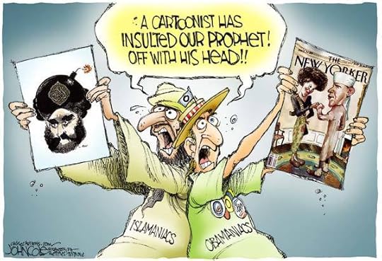 Whilst he acknowledges that the entire Muslim world consider such an illustration of their Prophet to be an insult to their religious belief. And yet, Hudgins then wrote, “those of us who value freedom must not succumb to fear and intimidation”. It was the printing of such cartoons that ultimately provoked some Muslims to resort to violence and, as is often customary, it was their backlash that became the focus of the cartoon controversy.