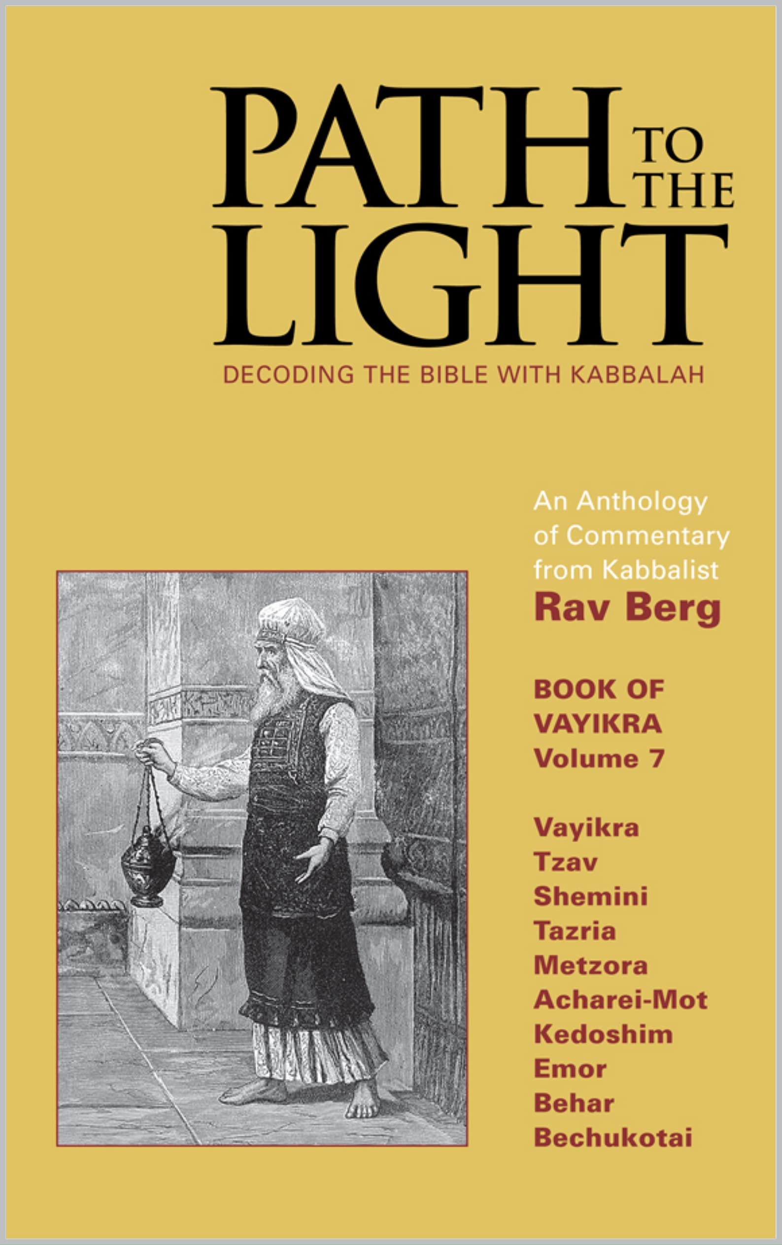 On a literal story level, the Book of Vayikra reveals the laws of living a pure and holy life. We read about the building of a Tabernacle in the wilderness, the different sacrificial offerings; the Priestly garments and roles, knowing what to eat and what is unfit; and what relationships are forbidden. The holidays of Passover, Shavuot, Rosh Hashanah, Yom Kippur and Sukkot are also mentioned, as is the Jubilee Year, the Shabbat, and the Sabbatical Year. However, Rav Berg reminds us that the purpose of the Bible is not religion, instead the Bible is a code that describes the spiritual machinations of this physical world. He “The essential reason of sacrifice is not to appease God but to cleanse ourselves; to clean ourselves of corrupted DNA that we brought upon ourselves.”