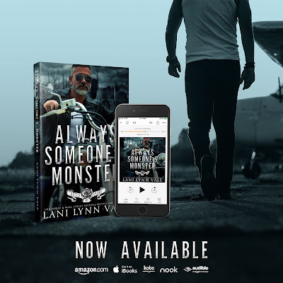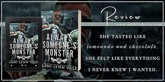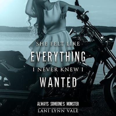 Always Someone’s Monster is the first book in Lani Lynn Vale’s new Battle Crow MC Series. I’ve been dying for Sophia Madden’s story since ‘meeting’ her in the Madd CrossFit series and wow what a steamy, forbidden, emotional story it was. It was so worth the wait. This story took me by surprise in the very best of ways. I was not at all prepared for the many feels this book would put me through and the moment I started reading it was impossible to put the book down until I finished. Sophia and Haggard have a complicated, emotional love story. He is her dad’s best friend and she is his daughter’s best friend. Holy forbidden but nothing about it felt wrong. The progression and development of their relationship was perfectly written and I fell so hard for this couple. The angst, tension and feels nearly wrecked me but in an all consuming way. Sophia is a firecracker of a woman. Fierce, knows her heart and mind and Haggard is what she wants. Haggard is a different man since his sister was held captive by traffickers. She’s now been rescued and is happy in her life but that year he lost with her destroyed him. He is a good man but does bad things for the right reasons. Sophia is a temptation to him that he tries very hard to resist, but she is persistent and becomes impossible to ignore the looks, touches and sparks. When they connect the passion between them is deeply intense and I couldn’t get enough. The book is unpredictable in ways that I can’t even begin to describe without giving away spoilers. If you are a reader that wants to feel all the emotions when you read this is the one to pick up. Just have your box of tissues nearby because you are going to need them!