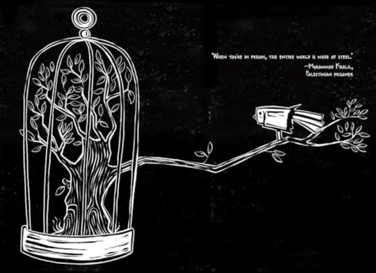 It's sort of a graphic essay. It doesn't sustain a narrative through the book which I think made it less engrossing. It felt more like an appeal from a political prisoner than a true memoir or the author's personal stories as is printed on the cover. The lack of a narrative plus the cold, stark illustration style does hold the reader at arm's length until the empathetic stories of Palestinians are presented partway through and break through that barrier.