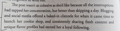 While I did enjoy Digging Up Love overall, I was not here for that "drama." It was really forced, came out of nowhere, and detracted from the real issues. Why is it any of Quentin's business when Alisha tells her family about her bakery dreams? She knows them and herself way better than he does, so shouldn't she be the judge of when she let's them know she wants to leave? I feel like the author tried to rationalize this with Quentin's past, but it didn't work. It was nonsense. Their other issues surrounding the university was much more believable and interesting. And definitely relevant to today's social media culture.