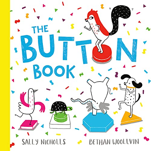 A variety of sweet animals team up to answer questions about the different coloured buttons they find and what could possibly happen if they decide to press them. They first discover that a red button when pressed... beeps, the orange button encourages everyone to clap, the blue button wants everyone to sing and the green button is a raspberry button... how rude! On and on they go trying their luck and delighting in the results that each new colour and shape button brings.