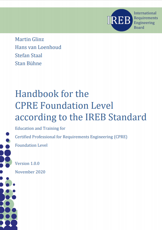 In practice, requirements engineering tasks become more and more complex. In order to ensure a high level of knowledge and training, the International Requirements Engineering Board (IREB) worked out the training concept “Certified Professional for Requirements Engineering”, which defines a requirements engineer’s practical skills on different training levels. This handbook provides education and training for “Certified Professional for Requirements Engineering” (CPRE) defined by the International Requirements Engineering Board (IREB). It supports its readers in preparing for the test to achieve the “Foundation Level” of the CPRE based on the syllabus version 3.0