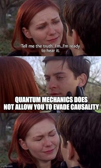Yeah, I don’t know. This stuff is so hard to write about for lay readers. There were precious few moments where I felt like I actually gained a better understanding of the universe. I think Sean Carroll’s Something Deeply Hidden is better at explaining Everettian theory to a non-scientist… and I know Mersini-Houghton is trying to explain more than that… I suppose at the end of SDH, I felt like I could explain why many-worlds isn’t insane to a teenager. I don’t think I explain much new because of reading this book.