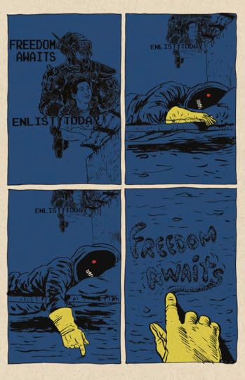 To call the book's art 'gritty', would be an understatement. It's filled with scraggly, thick-lined drawings, that are absolutely perfect for the story. The colouring is also excellent, really lifts the book.