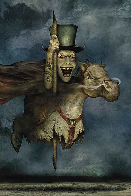 Going away, away, the calliope pipes shimmered with star explosions, but no one sat at the high keyboard. The wind, sluicing air-water air in the pipes, made the music.