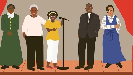 On the cover Amando Gorman is wearing the outfit that made her name internationally, the outfit she wore to President Biden's inauguration in January 2021. If you have never seen her recite The Hill We Climb it is on Youtube. Among the illustrations, there is a reasonable amount of diversity and the right focus on equality. The choices of clothing for her ancestors when she felt like they surrounded her were great. They potentially aren't entirely accurate but does that really matter, they clearly represent a passage of fashion for African-American people through time. Queenbe Monyei chooses to include the author that was extremely influential in Amanda's choice to make her voice heard, Toni Morrison (Monyei chose to use The Bluest Eye for the cover). Monyei was a great choice for the illustrator as an American woman of colour and I think the style just suits.