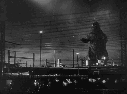Godzilla apparaît. Tout le monde crie. Godzilla disparaît. Bref intermède où les personnages humains apprenent des choses à propos de Godzilla. Mais... qu'est-ce que je vois à l'horizon...?! C'est Godzilla, vous aurez donc compris que c'est de nouveau le temps de crier.