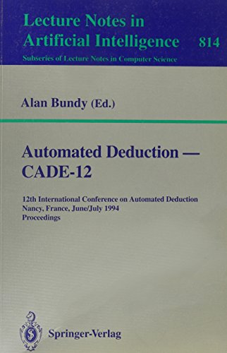 This volume contains the reviewed papers presented at the 12th International Conference on Automated Deduction (CADE-12) held at Nancy, France in June/July 1994. The 67 papers presented were selected from 177 submissions and document many of the most important research results in automated deduction since CADE-11 was held in June 1992. The volume is organized in chapters on heuristics, resolution systems, induction, controlling resolutions, ATP problems, unification, LP applications, special-purpose provers, rewrite rule termination, ATP efficiency, AC unification, higher-order theorem proving, natural systems, problem sets, and system descriptions.
