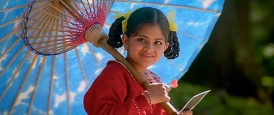 "Now Binya had seen umbrellas before, and her mother had a big black umbrella which nobody used anymore because the field rats had eaten holes in it, but this was the first time Binya had seen such a small, dainty, colorful umbrella and she fell in love with it"