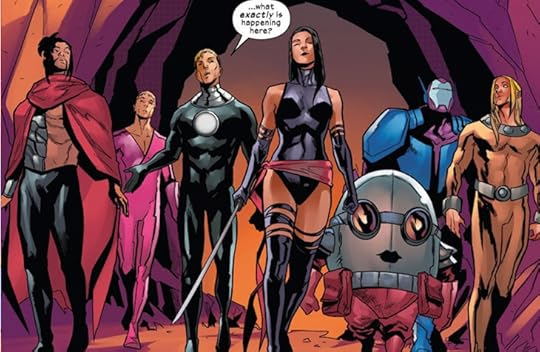I haven't actually read the X of Swords crossover, and something in that story drove the plot for most of this series. It's is both referenced and a little is explained, but admittedly I didn't quite understand it. The action is excellent, some really strong personal moments: seeing how Manuel really feels despite his behavior, the relationship between Crow and Kwannon, the continued oddness of Nanny and Peter, and poor Alex. Despite their severely dysfunctional team dynamic, they look out for one another (mostly) and Wells makes that very clear. From the overall X-Men perspective, Wells brings up a few interesting topics and perspectives which only adds to the layered richness of this title.