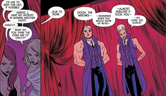 The action in Die by the Blade is terrific, but the plotting is bland as Black Widow and her crew attempt to infiltrate a gala for...reasons. Black Widow's feelings about her lost son get a brief reference - more emotions would have been better. One scene caught me surprise (), though, in true Marvel fashion, it is quickly retconned.