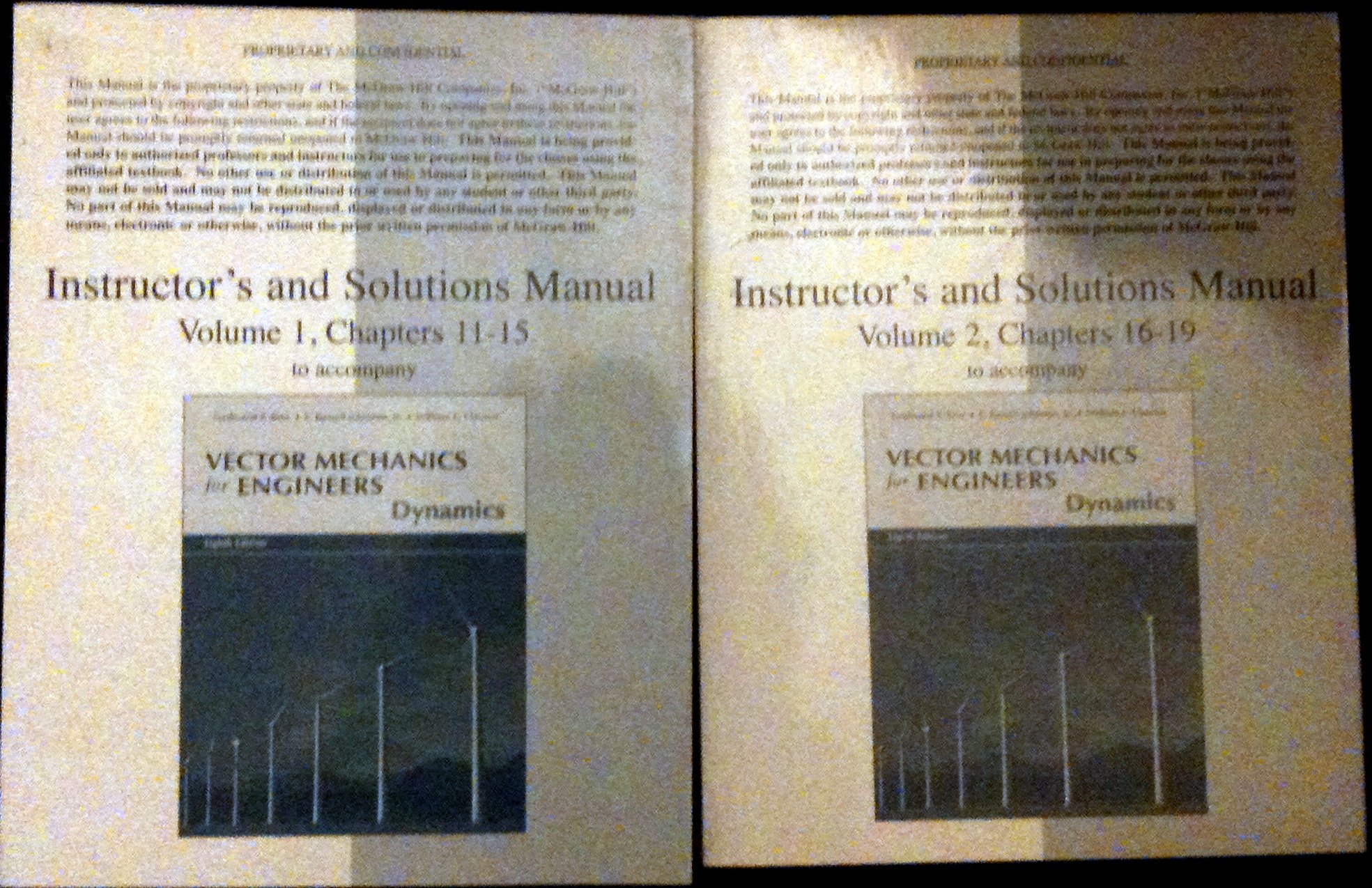 Instructor's and Solutions Manual Volume 1, Chapters 11-15 to accompany Vector Mechanics for Engineers Dynamics 8th this is the solution of vector dynamics book. problems are mostly the same as new edd. they change edition but dont change the problems entirely. 98% problems are still the same !