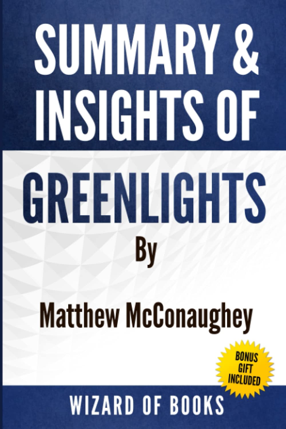SUMMARY & INSIGHTS Greenlights is the first book written and published by renowned artist, Matthew McConaughey, which some of his significant achievements in the film industry were Best Breakthrough Performance in the MTV Movie Awards for A Time to Kill, Oscars Best Actor, Academy Awards Best Actor, Golden Globe Best Actor, Critics' Choice Movie Award Best Actor all for Dallas Buyers Club. He would refer to it not as a book of advice, not a book about how to do something, but an "inventory" of his life. Readers will see how, in the past 50 years, Matthew fared through life including the challenges it presented, the comforts it gave him, and the lessons it taught him. Discover How To… ✓ Have a different perspective in life in order to achieve the highest form of freedom! ✓ Overcome adversity gracefully and have a deeper appreciation for different lessons in life! ✓ Become self-sufficient mentally and emotionally and become unstoppable! ✓ And MORE! This Summary & Insights guide is meant to supplement your understanding and knowledge about Greenlights by Matthew McConaughey. This guide is NOT the original book and it is NOT meant to replace the original book. Don’t Have The Time To Read Hundreds Of Pages? NO PROBLEM! Wizard Of Books Series Is Designed To Summarize and Shed Light On The Golden Nuggets Contained In Each Book! – Even Better, You Don’t Need To Spend HOURS Reading It! An Overview of what you’ll discover in Wizard Of Books Summary & Insights series. * Detailed “Bird’s Eye View” Summary of the original book * History and Background About The Author * Important Takeaways from each chapter * Chapter-by-chapter break down analysis & Synopsis * Engaging Trivia Questions Of The Book In A Nutshell * Trivia Questions For Each Chapter Of The Book – To Help You Retain The Understanding And Knowledge Of Important Golden Nuggets * How you can apply it in your life and where to carry on from here! … AND MORE!