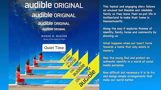 Thoughtful and circular book dealing with instant media and instant fame. Is the phenomenon of Tik Tok making teenagers too self conscious and unable to live a "real" life? A TV reality show Quiet Time puts two teenagers into media lockdown expecting that their lives will branch out into more old fashioned pastimes. They don't anticipate that the teenagers friends will tell them what's going on in the global world anyway. One of the things going on is the relocation of the Livingstone family from sophisticated and international Geneva moving to Marblehead, US. Major culture clashes and misunderstandings ensue, starting with the school's lockdown drill . 16 year old Beatrice misunderstands the practice drill, panics, thinking it is the real thing, knocks out and overcomes the burly actor pretending to be a terrorist. When this appears on the net it goes There were some hurdles for me though. The most annoying problem was the relentless bad temper of Beatrice and the complete thoughtlessness of Robert Livingstone, father of this multi ethnic brood. If I were married to someone who thought of me in nothing but terms of sex and who appeared to have no inkling of how hard I worked for my family, I would rapidly get shot of him. Robert alas is this man. There were umpteen references to author Stephen King throughout the narrative and it became apparent that Derek Milker must be a King affficionado because I realised that this original audiobook is a narrative after King's own heart, very much written in his style. Eventually so many people are watching real life events that the fortunes of the Livingstones and Quiet Time become entertwined. The ending is pleasingly complete and skilful.