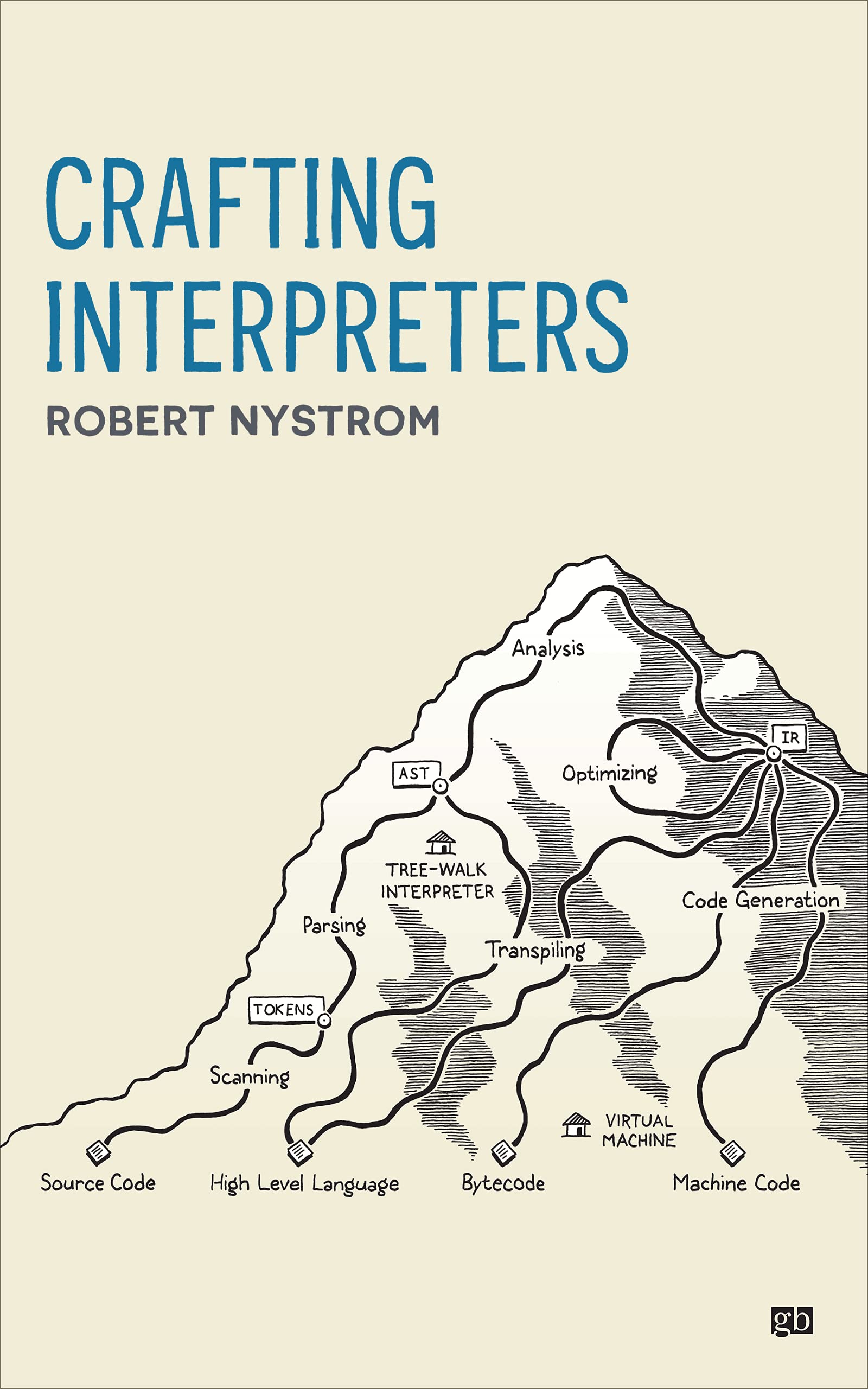 Starting from main(), you will build a language that features rich syntax, dynamic typing, garbage collection, lexical scope, first-class functions, closures, classes, and inheritance. All packed into a few thousand lines of clean, fast code that you thoroughly understand because you wrote each one yourself.
