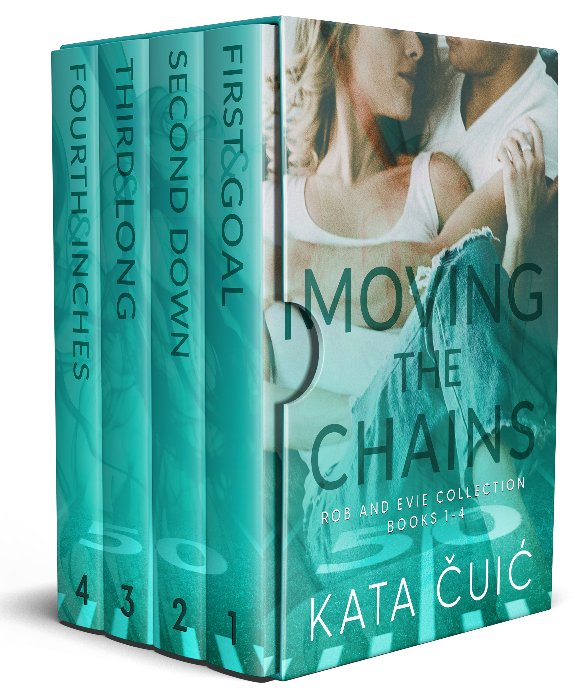 This collection of the first four books in the Moving the Chains series follows Rob and Evie's epic love story from first crushes in high school through the demands of family life with a professional football player. It includes: First and Goal Second Down Third and Long Fourth and Inches