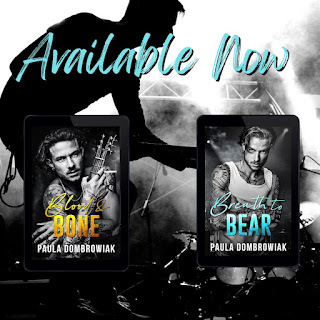 When I finished reading Paula Dombrowiak's debut rockstar romance novel, Blood and Bone many months ago (which is a MUST READ before digging deep into Breath to Bear) my initial reaction was WTH did I just read?? It was a tornado of angst and drama but I didn't mind- the tumultuous and tragic story of Jack O' Donnell's rocky start was the kind of book I love to get lost in. It left me with the mother of all book hangovers for the longest time after finishing it and I couldn't have been more thrilled to have found it. Counting down to the release of Breath to Bear was a torture I gladly accepted because I needed to know what was next for this enigmatic rocker, hoping for a happy ending, but knowing Jack as I felt I did now... I wondered if my wish for him could really come true?