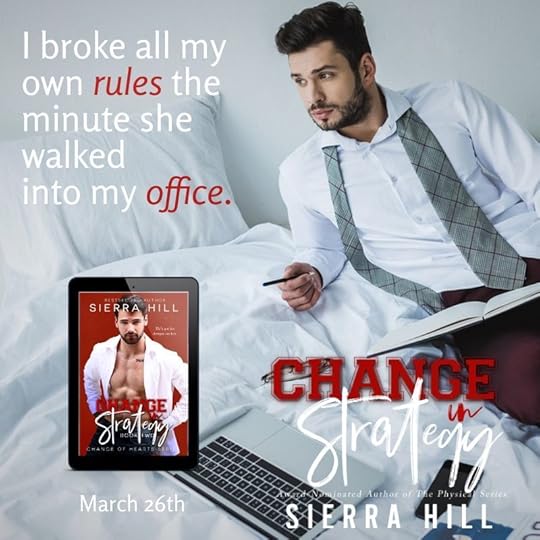 Sierra Hill is an amazing author who creates storylines that intrigue us and capture our attention, and characters that pull on our heart strings, who we will never forget. “Change in Strategy” is the second book in her Change of Hearts Series, where we meet innocent intern, Peyton and successful businessman, Brody.