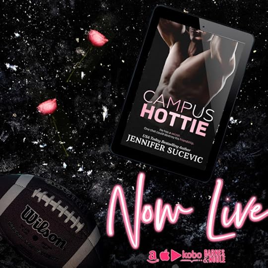From USA Today bestselling author Jennifer Sucevic comes the next sexy standalone novel in the Campus Series. Carson Roberts is Western University’s most sought after tight end. He’s the total package. A pretty face to go along with all those sculpted muscles—check. An All-American—double check. A guaranteed one-way ticket to the NFL after graduation—triple check. Did I happen to mention that he’s also my brother’s best friend, which means I grew up with the guy and have crushed on him for nearly just as long? We’re talking a decade of unrequited yearning here, folks. Don’t worry, I’m slowly coming to terms with the fact that he’ll never see me as anything more than the little sis he never had. Sort of. And even if he did just so happen to notice that I’ve filled out and no longer wear braces, Brayden would have a major conniption. When it comes to the male species, he’s ridiculously overprotective. Any guy who has so much as given me a bit of side-eye has been treated to a swift and memorable beat down. Which is precisely why I’m still in possession of my V-card. Want to know how to make being a nineteen-year-old virgin with a major crush on her brother’s best friend even more pathetic? Blurt out at a frat party that you’ve spent all these years saving yourself for him. Sadly, I can’t even blame it on the alcohol because I don’t drink. If you’re thinking it can’t possibly get more humiliating than that, you’d be wrong. Oh. So. Wrong.