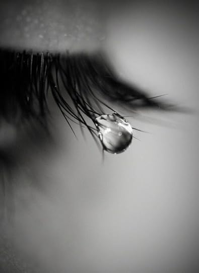 A tear held suspended on one of her thick, long lashes before it fell on her suddenly pale cheeks.