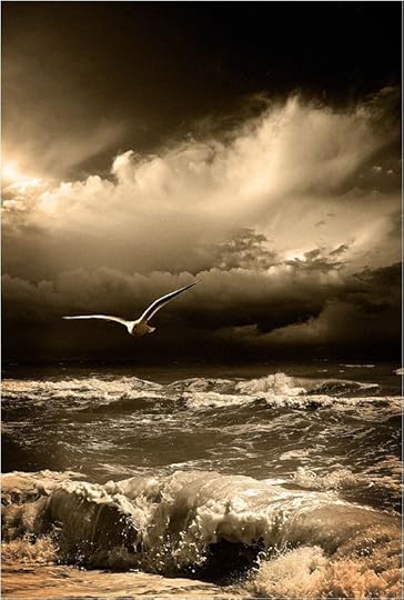 "We are the only foolish ones by the sea today," she said tugging, her cloak tighter around her and peeking at the overcast sky.