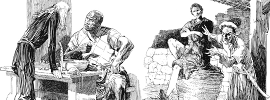 I protagonisti del racconto sono un’improbabile coppia di avventurieri che agiscono come gli epigoni di Hap&Leo di lansdaliana memoria o gli antenati del “buono” (Eastwood) e del “brutto” (Wallach) ideati da Sergio Leone, gente che vive di espedienti, abili nel congegnare, grazie anche alle doti di trasformismo, elaborate truffe ai danni dei creduloni, con un risultato che può rivelarsi in qualche modo divertente.