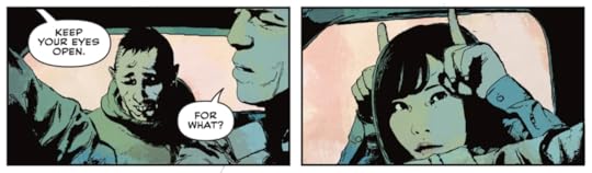 Andrea Sorrentino's european and peculiar style adds a lot to the whole ambiance of course. The funny thing with Sorrentino is that I don’t even like his style but can’t help being fascinated with it. It catches up your eye, whether you like or not, and never lets go of you. Still, some panels are not always clear and the storytelling, though ambitious, is sometimes confusing. Jordie Bellaire uses some aptly sick colors but even though I usually like her color chart, it didn’t stick with me this time.