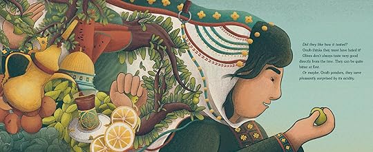 The writing style of the book is fairly surface level with concepts not fleshed out to allow difficult concepts to reach younger readers. When describing the taste of the fresh olives, Oraib wonders if long ago people were, "pleasantly surprised by its acidity." No insight into what that acidity tastes like, or bitterness, or what curing and brining means. Often the paragraphs seem long winded and repetitive, adding very little to advance the story.