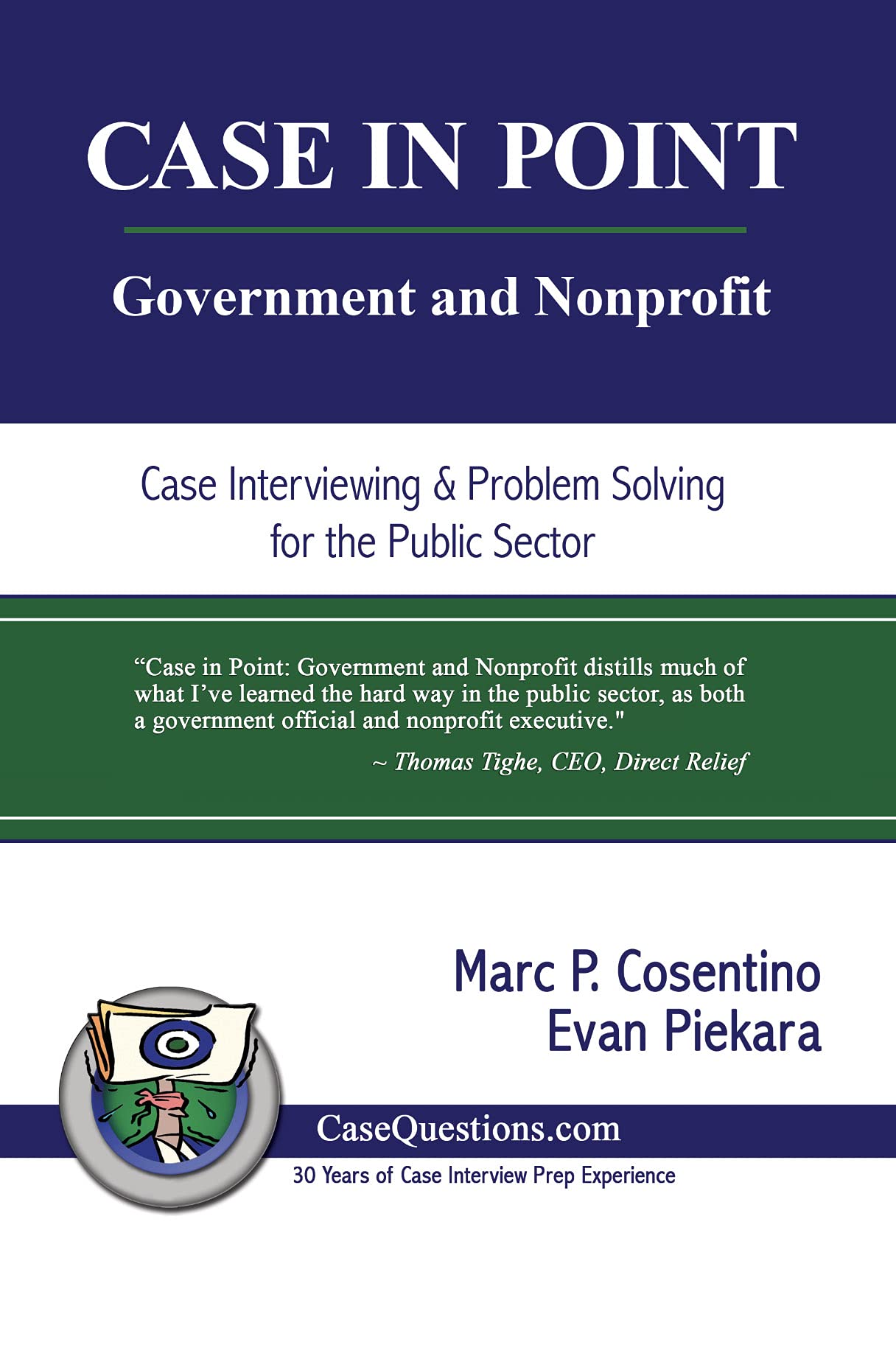 Case In Government and Nonprofit by Marc Cosentino and Evan Piekara may be the only case preparation guide that focuses exclusively on the government and nonprofit space. This book has been specifically designed for those interested in consulting for the government and nonprofit industries, and those who are interested in social impact and corporate social responsibility roles. The book provides a toolkit of frameworks, interview and industry preparation, fifteen case interview transcripts, fifteen partner cases to practice with a friend, and much more packed into a reader-friendly and easily understandable format! Read this book to help better understand the nuances and distinctions in the government and nonprofit space.