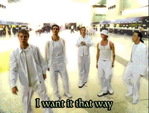 Backstreet Boys, in a rock star book, haha lol!!! It is so sweet and so funny when you read it!
