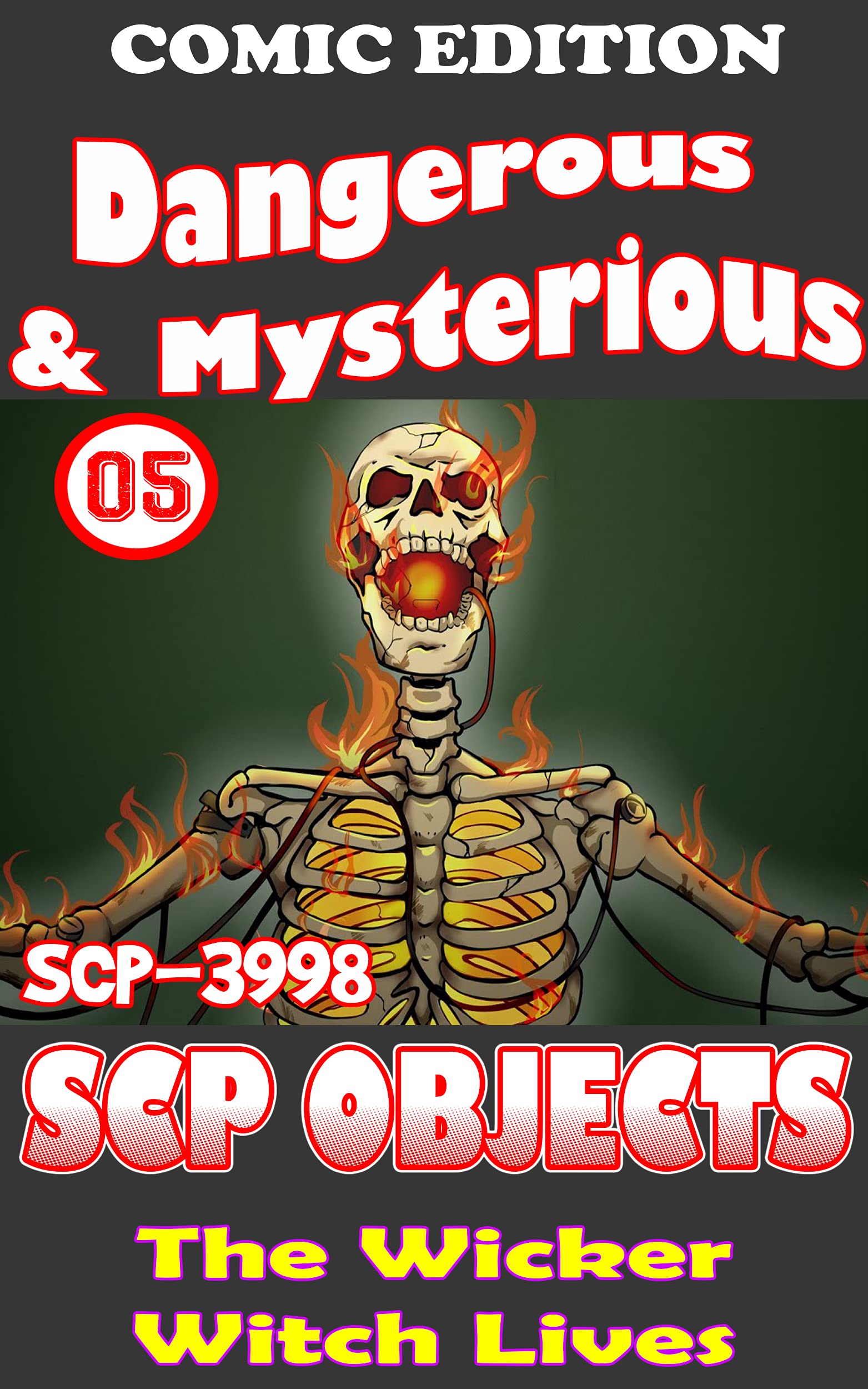 SCP-3998 is a human cadaver, which expired late 17th century. SCP 3998 lacks any legs, and is covered in extensive fourth degree burns. Sometime after its death, the remains of SCP3998 were collected and fashioned into a scarecrow, held together by wicker, nails, and wire. The object constantly exudes a flammable liquid from its bones, which is composed primarily of ethanol and human fat and each night, between 11:00 PM and 4:00 AM, SCP-3998 ignites and is engulfed in flames.
