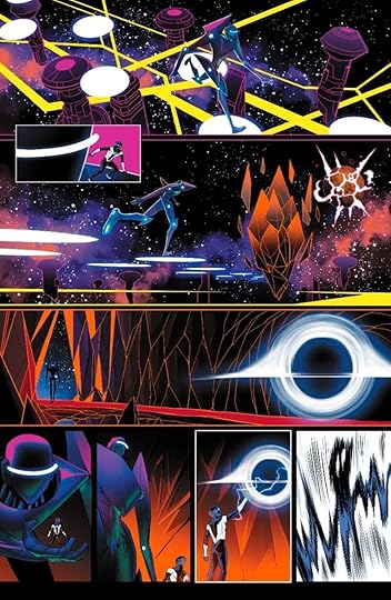 Well, this second Radiant Black volume has fewer Power Rangers vibes, I'll give it that. But where the first volume was mostly dumb fun, this second volume gets bogged down in psychedelics. Namely, Marshall goes on some kind of cosmic trip to determine why he wants so badly for Nathan to take back the Radiant superpowers. It's morose nonsense that's nearly impossible to follow. And it's probably intended to be world building?