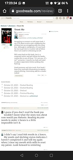 Guys, take a look at his review in which he called his female reader a troll and posted a link to her review so that..what? His other readers could bully her for her opinion?
