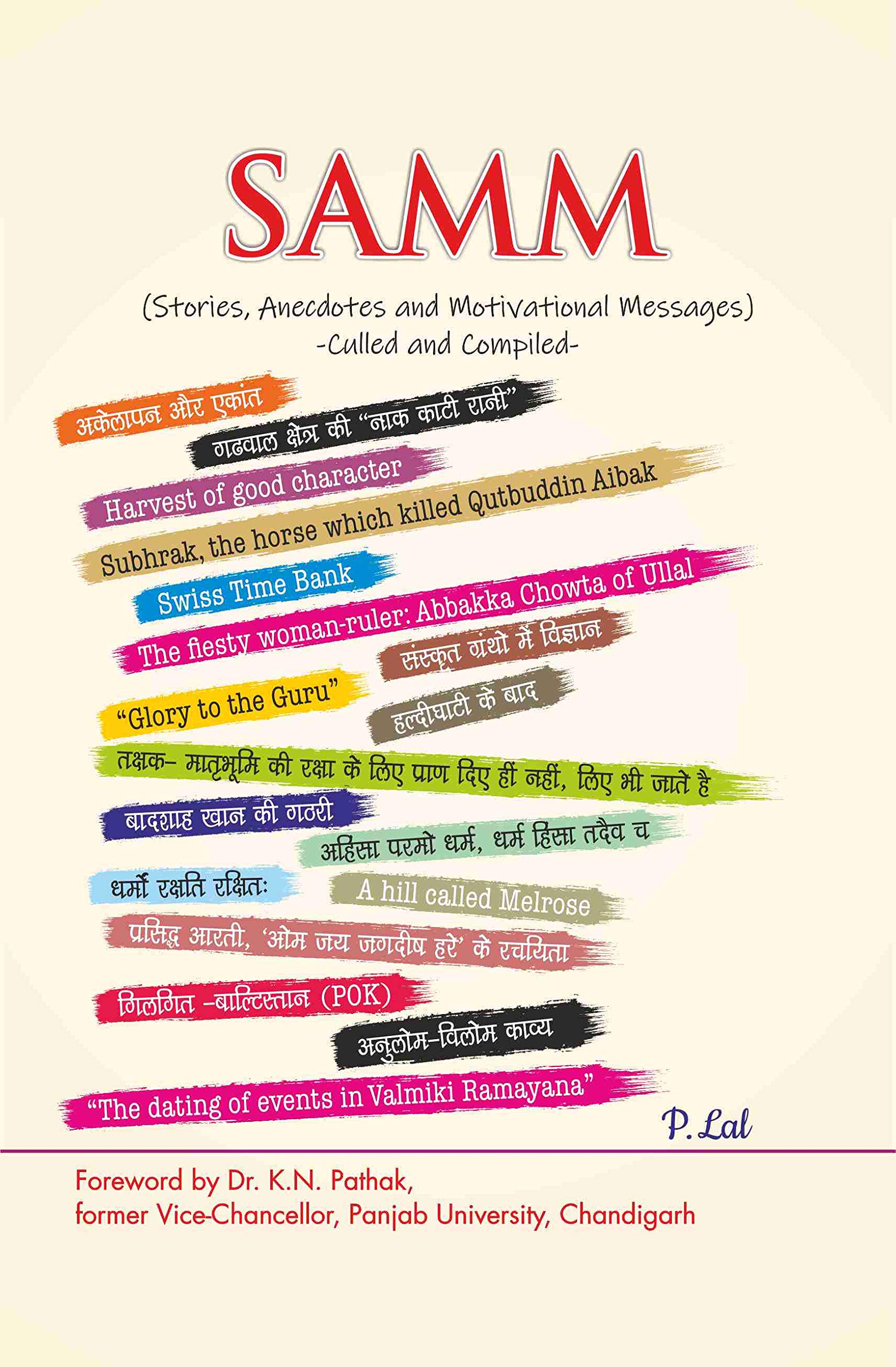The name of the book 'SAMM' is an acronym for 'Stories, Anecdotes and Motivational Messages. These have been culled from different sources, mostly from social media platforms. They are of varied nature, many of them giving a perspective to our ancient culture and certain ignored aspects of our history. Though the facts in some of them may be subject to debate, they have been included as received leaving it to readers to examine them if they so desire.
