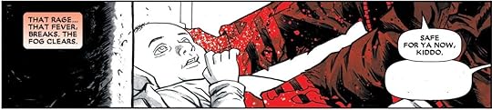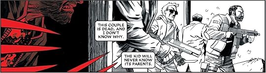 Cabin Feverby Declan Shalvey - ★★★★★ Logan comes across a crying baby in a cabin. Both his parents are dead. Then the killers return. This was my favorite story of the bunch. Shalvey makes the best use of the red as well.