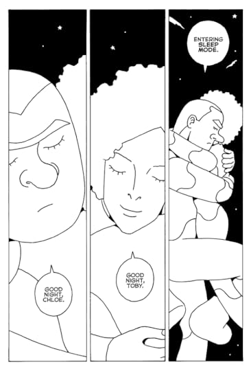 I really enjoyed this graphic novel. It tells a story spanning across thousands of years, interconnected by a few key robots who experience memory and the passage of time different from humans. I really like the way these two themes - memory and time - were explored. Identity has a really interesting tie to this as well, especially with Ito and Simon Chan, where I was pleasantly surprised to see memory and gender identity being played with in a really unique way. I was particularly struck by the character of Maria/Onda, who exists in isolation over the span of 100,000 years, with only pockets of contact coming every so often to update her on the state of the world. Maria has been programmed for a kind of lonely existence that no human could even conceive of, and the book takes great pains to remind us of what robots are capable of compared to humans. There is an interesting side-plot where we can see humans slowly regressing to a proto-evolutionary state, while the robots gain precognition, reject human design, and ultimately transcend to an existence of pure data.