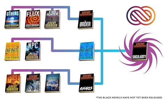 In the author's note, Robinson indicated that he will be pulling characters from three different streams of his novels to come together in a final cross-over book called Singularity. The different streams are shown below.