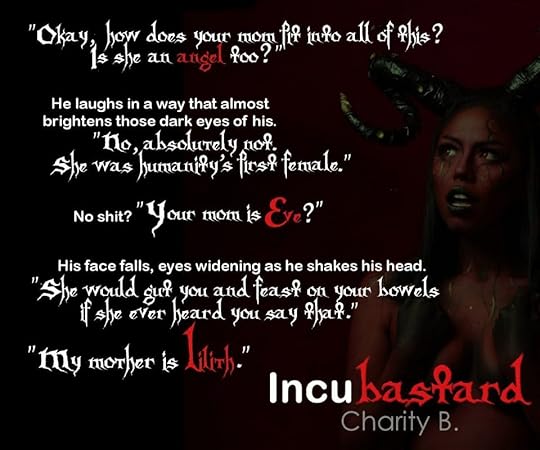 If you love PNR and Dark romance: I highly recommend Incubastard. Charity B. is a one-click author who pushes your boundaries and writes outside the box.