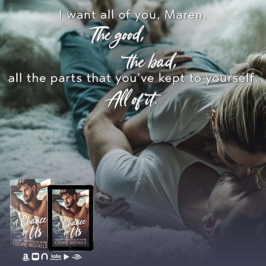 As always Corinne knows how to hit us right in the feels. I have loved the entire Willow Creek Valley series but i think this one is my favorite. The chemistry Oliver and Maren have is just perfect! After reading A Chance For Us I am wishing for my very own Oliver. Loved the little cameos throughout the story as well. Definite must read!
