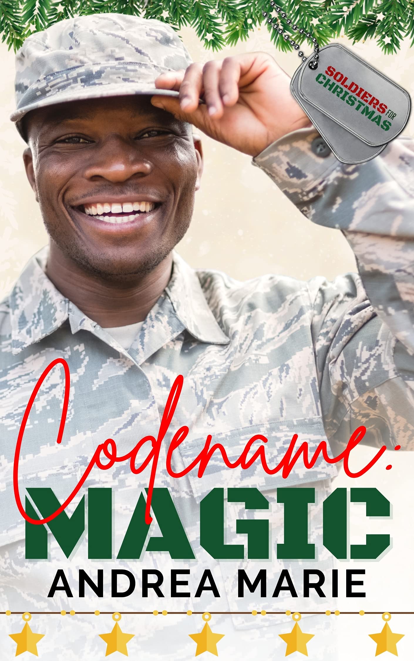 Codename: Magic by ANDREA MARIE is part of the Soldiers for Christmas series. This is the first book I have read by this author, so I was not sure what to expect. But as I have enjoyed other books in this series and liked the books description I decided to load this short story up and hoped I would like it....which I did. Charlie "Magic" Johnson is coming home for Christmas with his unit after being overseas for the last year. With eight years in the Army Charlie is having to make some decisions during his time at the family farm in Ottumwa, Iowa. While he was away his father had died and his mother has been running the farm since but that is not a plan for the long term. When he gets off the bus he hears his name being called by a familiar voice, Gina Kincaid, his high school sweetheart. When Gina and Charlie had graduated they agreed to split up as she was going to university to become a veterinarian and he was enlisting. After she had graduated she moved back home and has opened her own vet practice. Since Mr. Johnson died she has been helping Mrs. Johnson as best as she can, as they were always like family to her. So it was Mrs. Johnson who put her into service to pick up Charlie at the bus station and is playing cupid. One look between Charlie and Gina and all those old feelings and more come back, then add in some time spent together, some more shared heartache, and it quickly becomes apparent to each of them that they want to be back together....as they just fit. But will Charlie decide to stay or will he re-enlist to be with his other family?