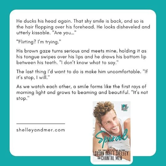 Spiral is book #0.5 in the Love & Rugby series by Susan Scott Shelley and Chantal Mer. This is a very short prequel introducing this series. This is a MM, sports (rugby) romance.