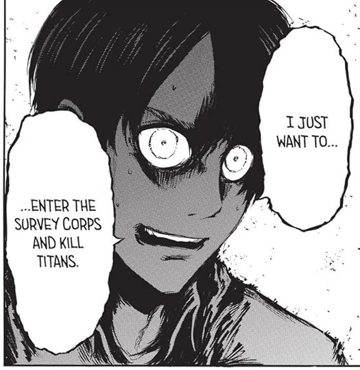 “It’s like I’ve been in a constant state of surprise ever since joining the Survey Corps. It’s not only Hange. This organization is full of oddballs; like a haven for eccentrics. A group of people looking to change the status quo. That’s the Survey Corps.”
